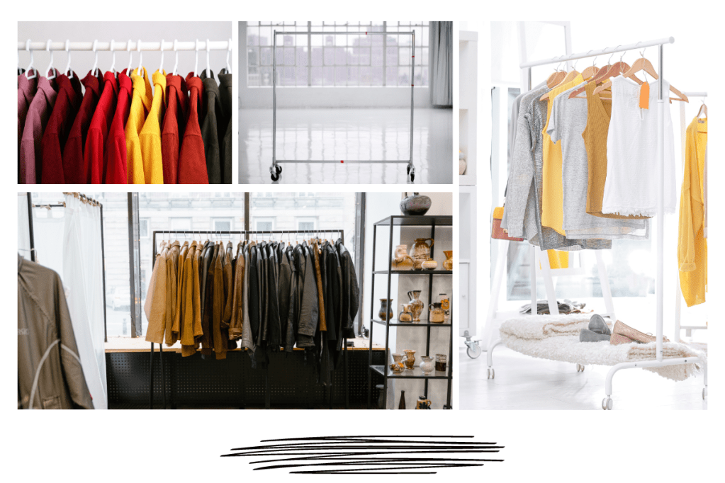 4. Some clothes racks with wheels are designed to be foldable. making them easier to store when they aren’t in use. This may be profitable if you have limited storehouse space or must transport the rack constantly.