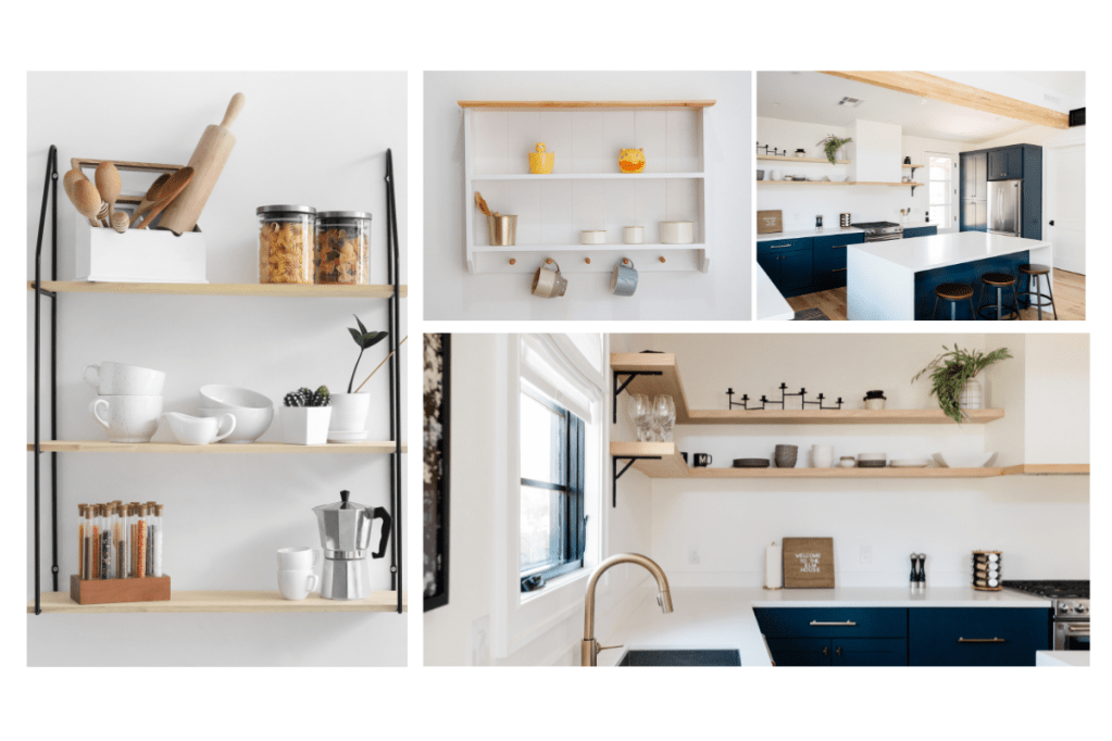 Wall-mounted storage – You can make use of the vertical space in your kitchen by using wall-mounted storage options like shelves or pegboards. Pots, pans, and utensils can be stored in these storage choices, which can be tailored to match your kitchen’s style.