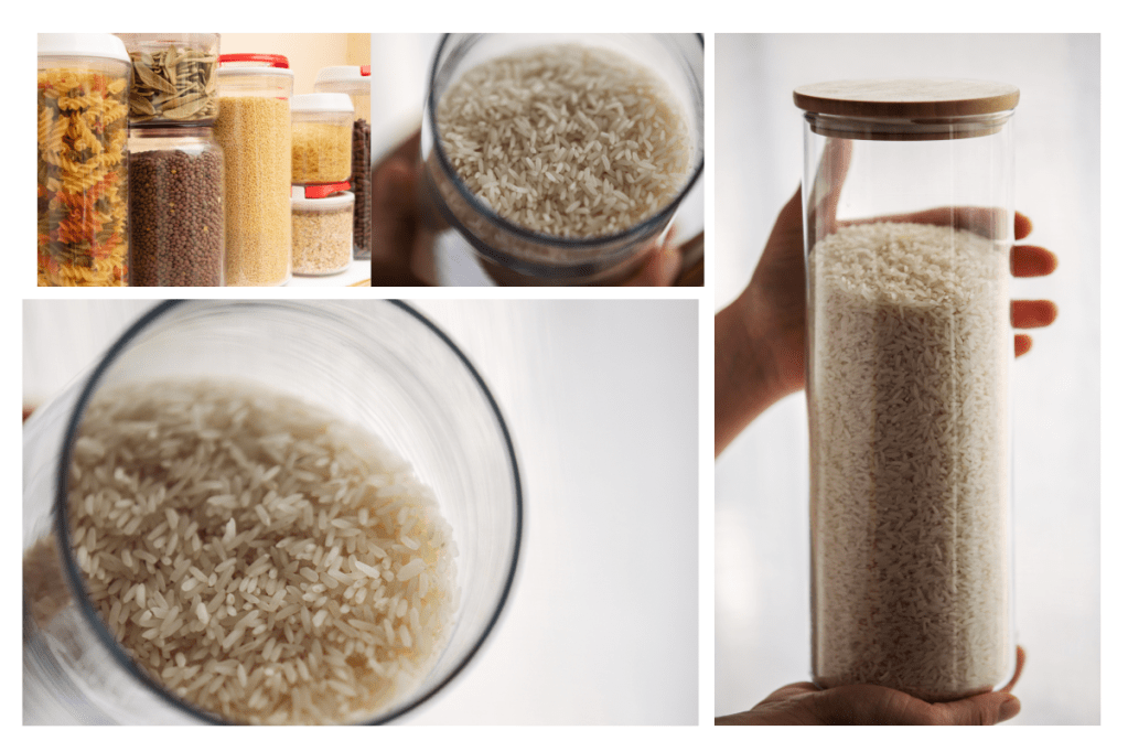 - Glass Rice Storage Containers: Glass rice storage containers represent an excellent choice for individuals who desire to behold their rice without unveiling the container. These containers are nontoxic, resistant to odour or flavour absorption.