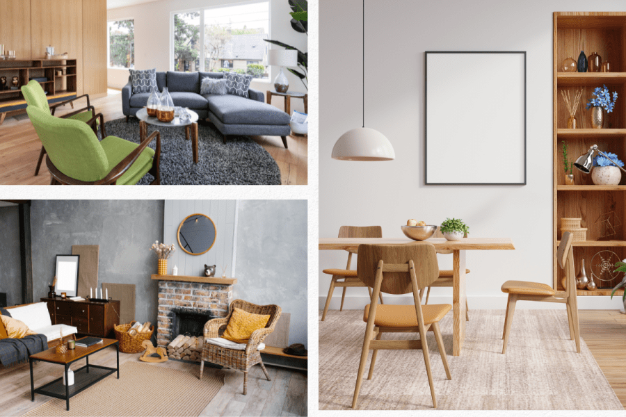 - Invest in a statement piece like a mid century modern sofa or armchair to serve as the centerpiece of your living room.