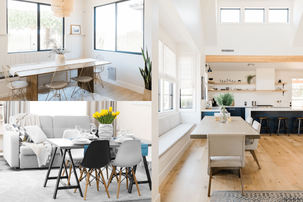Measuring the eating area’s measurements in order to gauge the available space is the first step. Calculate the square footage of the room after taking measurements of its length and width. You can use this dimension to assess how much furniture you can fit in the area without making it too crowded.