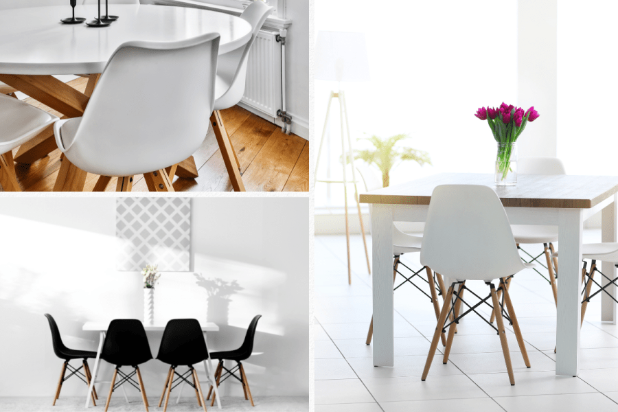 The Eames chair, designed in the 1950s by Charles and Ray Eames, is an enduring classic. With its molded plastic seat, the white Eames chair offers exceptional comfort and an elegant appearance. The chair’s mid-century modern design makes it an ideal addition to a modern dining space.