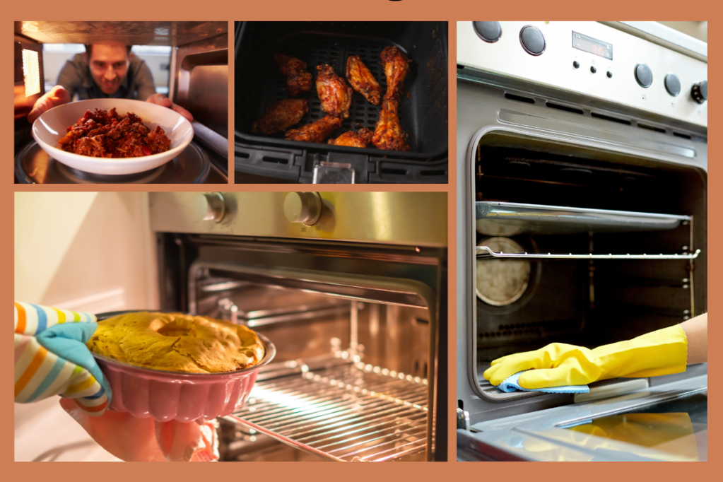 Air ovens also clean better. They have no heating elements or grills, so food can’t get stuck. Many air ovens have a self-cleaning function that burns food residue in a few hours.