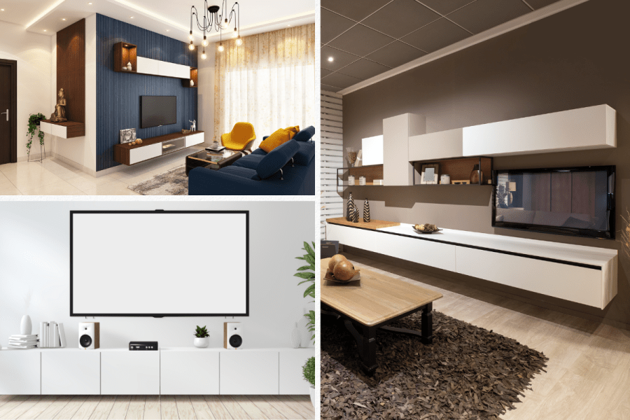 The use of floating TV consoles is one design motif that has gained popularity recently. These sleek and contemporary designs affix directly to the wall, saving priceless floor space. They can also be altered to meet your particular requirements, with options for shelves, drawers, and even built-in lighting.