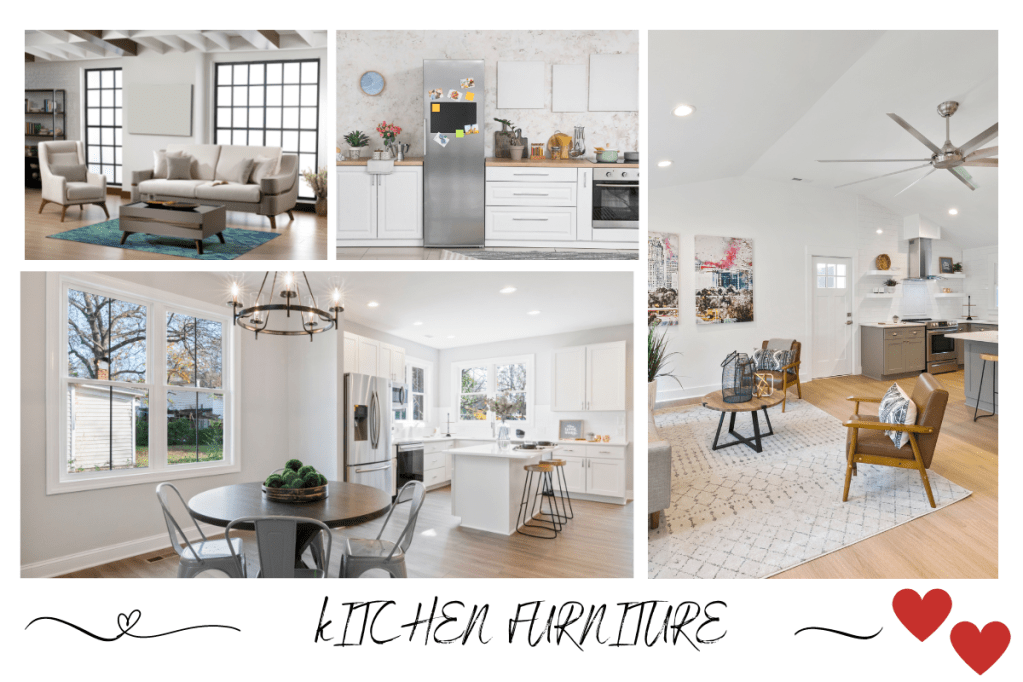 Chairs and Tables, Chairs and tables are crucial in any kitchen, providing a space to sit and eat. Chairs and tables should be chosen based on style, substance, and size. Chairs and tables should match your kitchen’s decor, whether it’s conventional or modern. Choose a material based on your taste and budget. Wood, metal, and plastic have different looks and feelings.