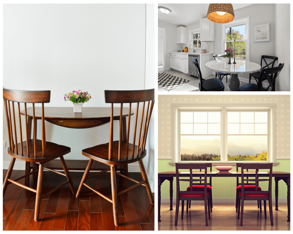 Your modest dining table should match your house’s design. Go for a table with straight lines and a sleek style if your house is contemporary. Choose a table with an intricate design and a wood finish if your house is more classic.