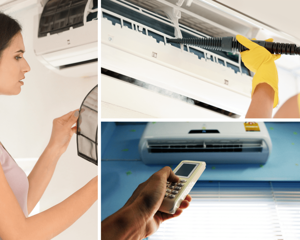 Clean or replace the air filter every month to ensure proper airflow and prevent dust and debris from accumulating in the aircon.