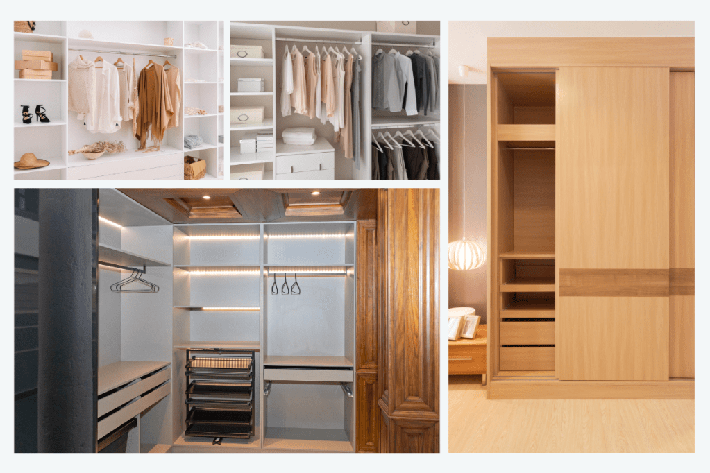 Built-in closets are sleek and modern because they blend into the walls. They fit the area and match the room’s decor. Freestanding closets, on the other hand, can be moved. They come in varying sizes and styles, making them suitable for different spaces and styles.
