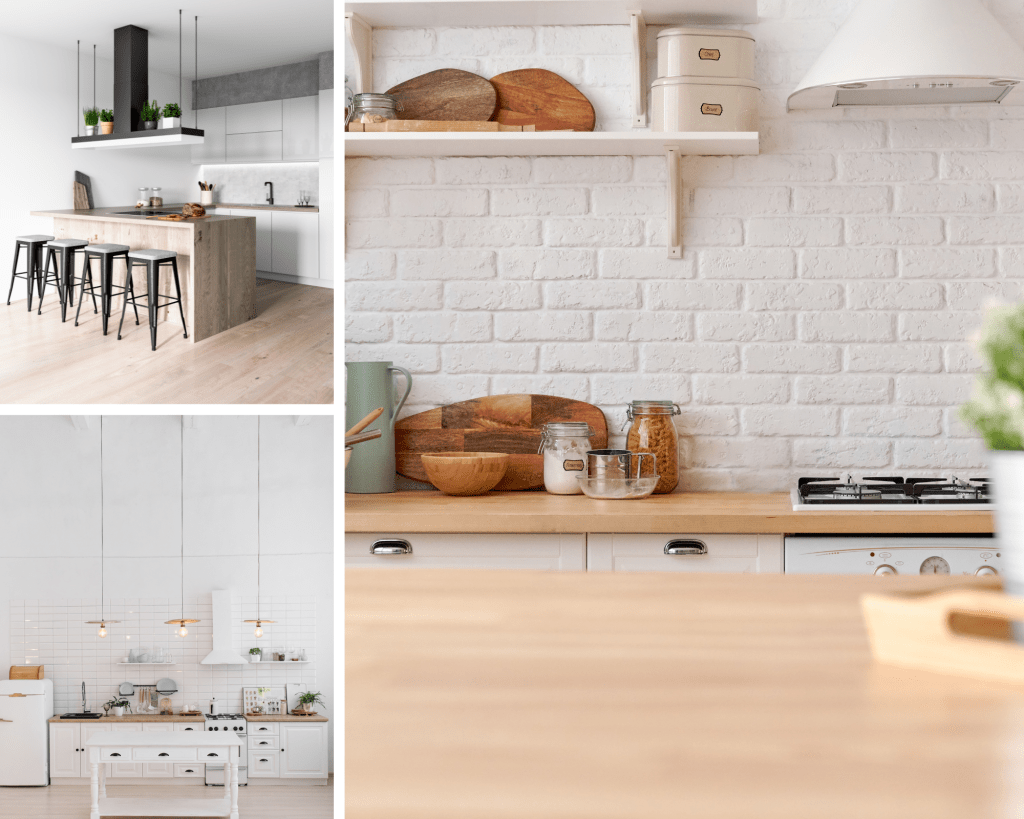 Organic substances, such as wood, stone, and brick, confer a congenial and inviting vibe to your kitchen. You can utilize these substances for your floors, countertops, or accent walls to engender a natural and authentic aura.