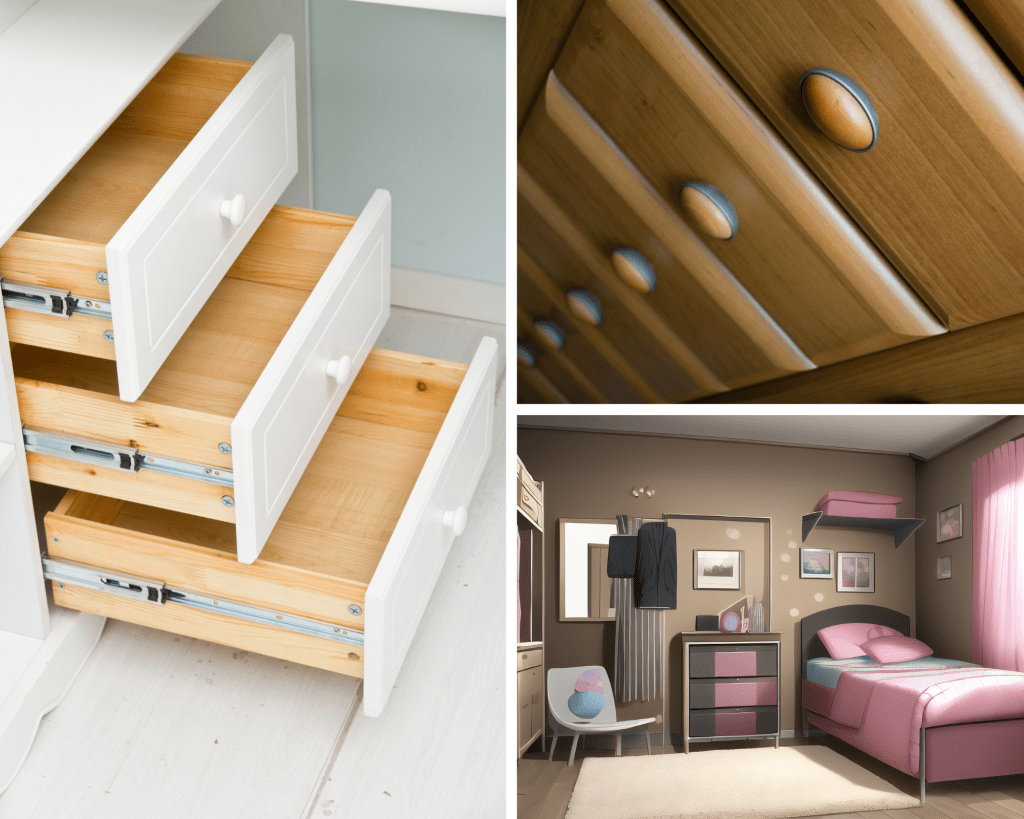 One of the most important factors to consider when choosing a bedroom drawer is its material. The drawer’s durability and appearance depend on the material chosen. The following are common bedroom drawer components: