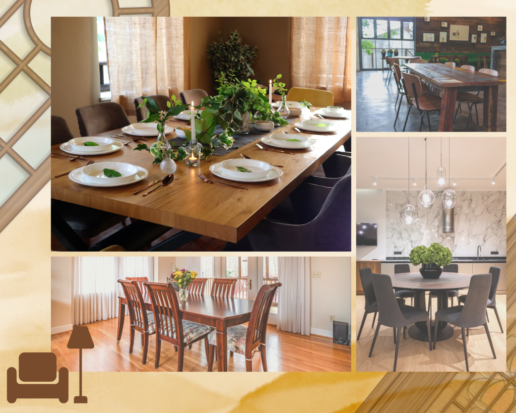 The table’s height and distance from other furnishings must also be considered. For easy movement, provide enough space between the table and other furniture like sideboards or cupboards.
