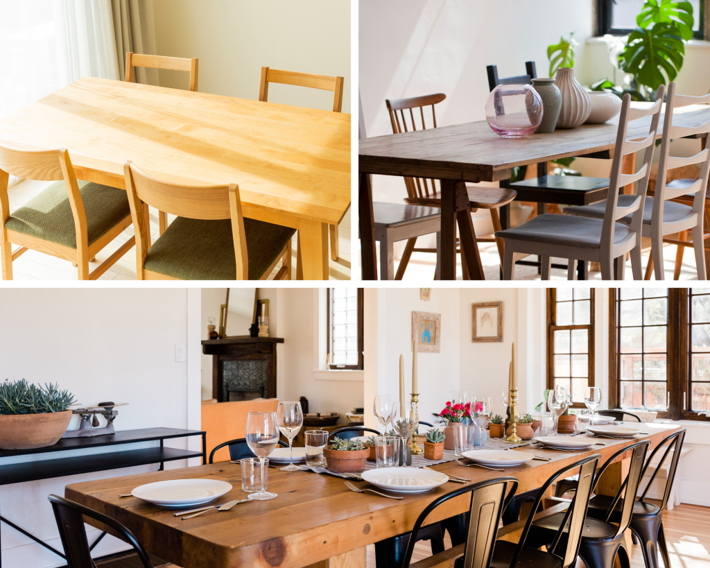 It’s important to think about the table’s form as well. Although square or rectangular tables work well in bigger areas, round tables are ideal for smaller settings. The table’s hue should blend well with the room’s design and other furnishings.