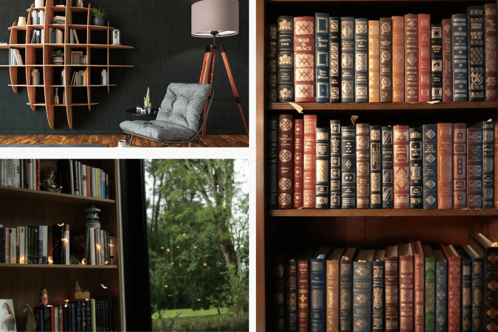 Your home decor style should influence your bookshelf design. Your bookshelf should match your décor, whether it’s classic, modern, or somewhere in between. One option is to match your bookcase to your home’s materials and finishes. Consider a wooden bookcase if you have a lot of wood furniture. A metal bookcase may be great for a modern home with clean lines and metal accents.