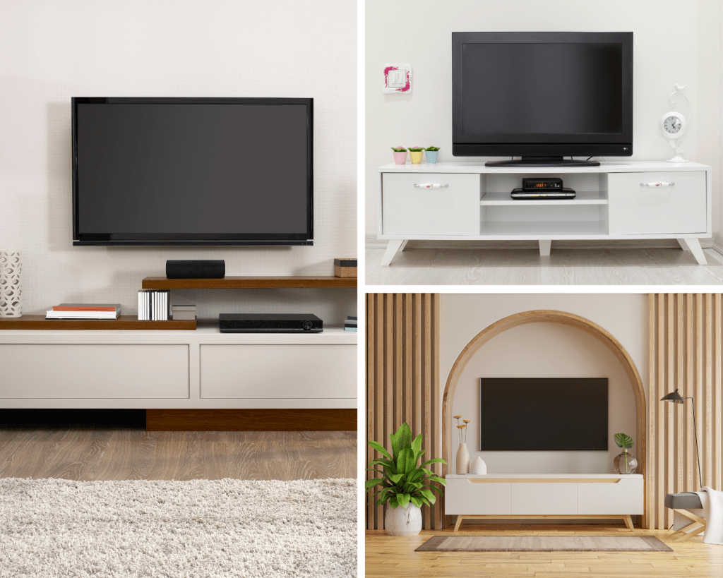 Shelves, cupboards, and wall-mounted units can help you arrange your living area and declutter. These storage solutions keep your electronics safe and accessible while maximizing space. Drawers, baskets, and organizers can also help you manage your remotes, cords, and other minor accessories.