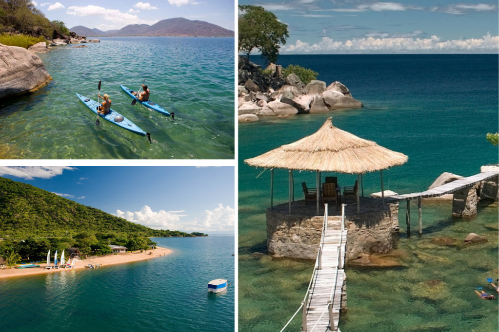 Snorkeling, diving, and kayaking are also available at Cape Maclear Beach. Underwater exploration is common in Lake Malawi’s calm, clear waters.